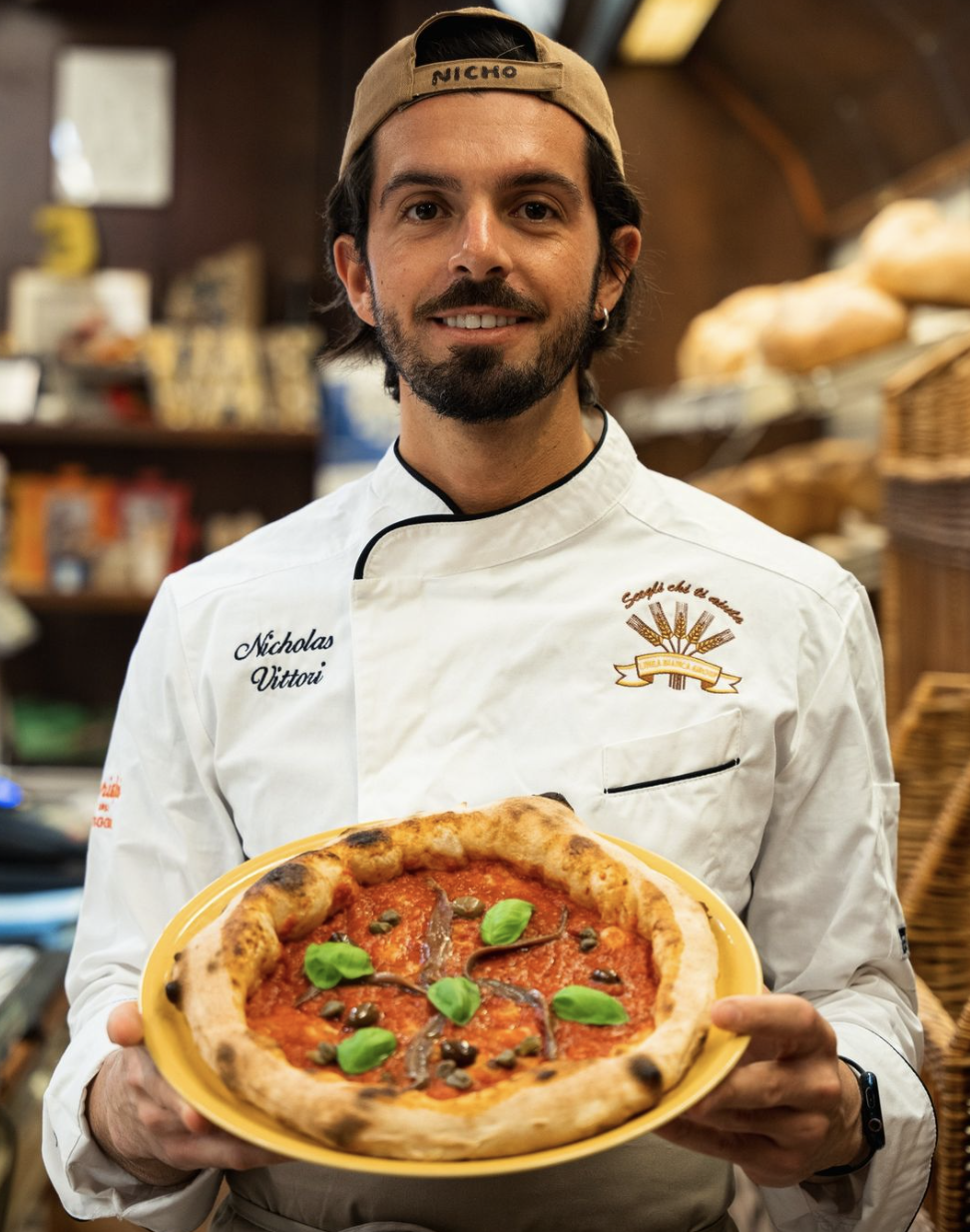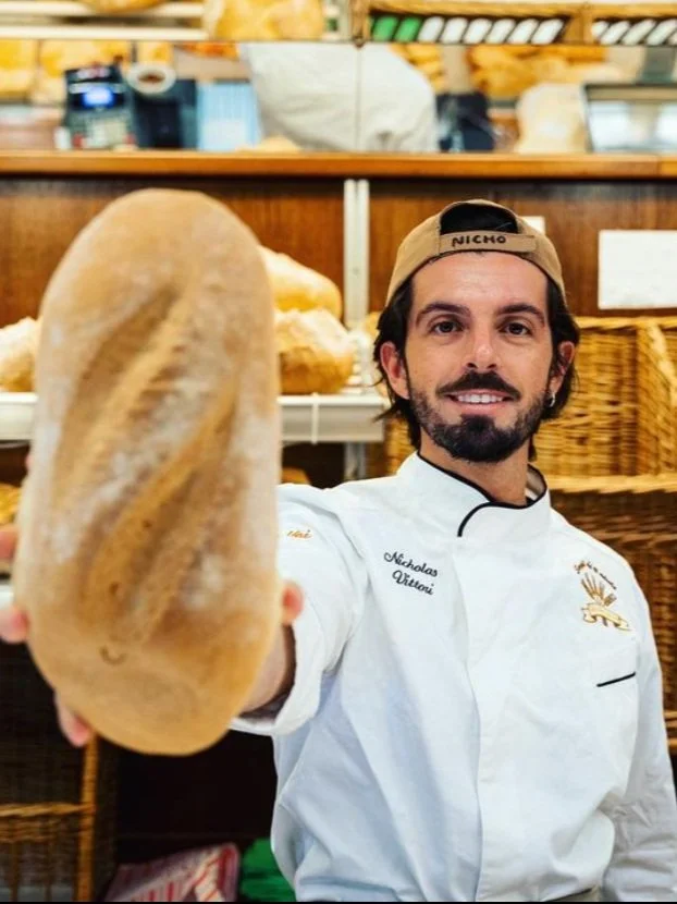 Il profumo di pane, pizza e biscotti inebria l’angolo di piazza Cavour con la via Emilia, a Casteggio. Nel 2018 lo storico panificio Vai aveva chiuso i battenti lasciando un vuoto nel centro del paese. CI ha pensato Nicholas Vittori, classe 1992, a riaprire e a riportare le dolci fragranze e i sapori genuini del forno con prodotti ancorati alla tradizione e qualche innovazione. Un altro giovane che scommette su lievito e farina per il proprio futuro. A marzo 2021 Nicholas e Davide (il socio di allora) riprendono l’attività di questa bottega.